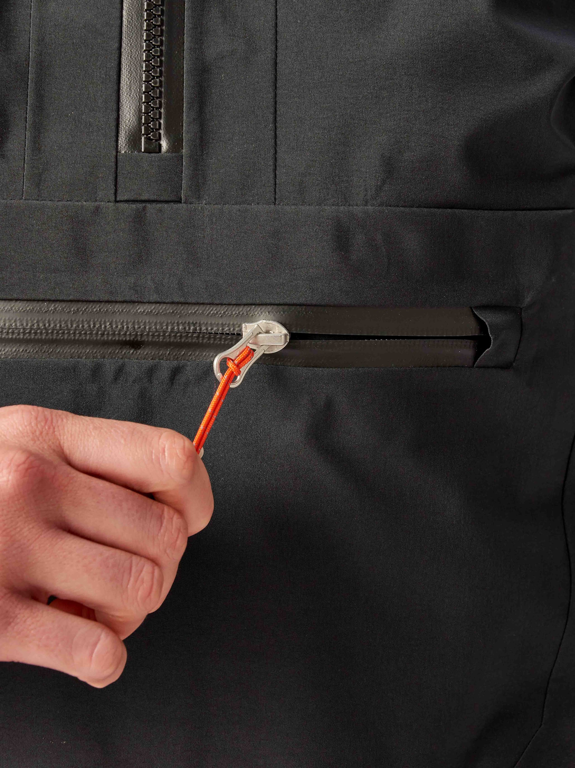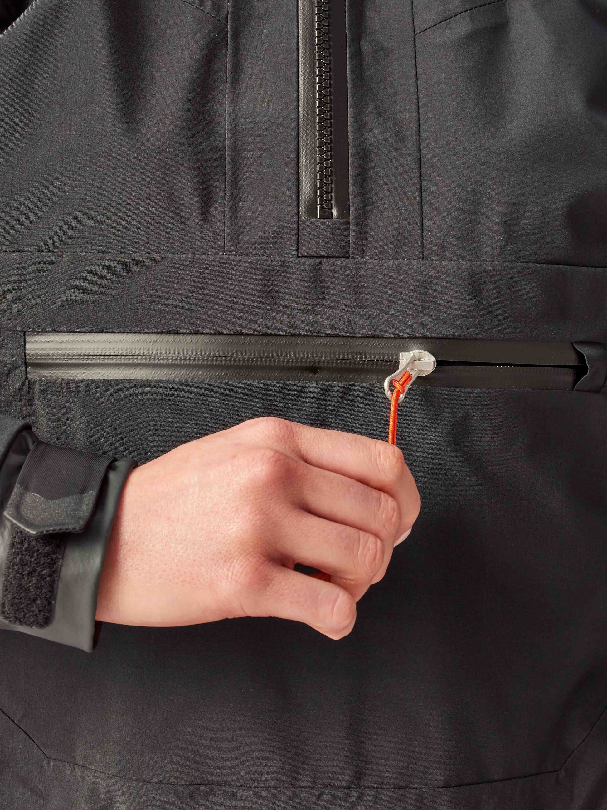 - Adjustable stretch laminated collar for comfort and waterproof protection